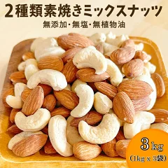 ミックスナッツ 厳選2種類素焼き 3kg (1kg x 3袋) ミックスナッツ 無添加ミックスナッツ プレミアム 素焼きナッツ 素焼きナッツ アーモンド カシューナッツ 素焼きミックス おやつ おつまみ『無添加・無塩・植物油不使用』